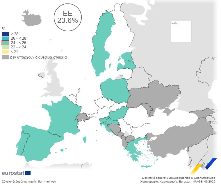 Τα τελευταία στοιχεία της Eurostat για τα νοικοκυριά με παιδιά (2024) φανερώνουν το πρόβλημα σε όλη την Ευρώπη και φυσικά στην Ελλάδα. Οι οικογένειες κάνουν όλο και λιγότερα παιδιά, ενώ τρίτεκνοι και πολύτεκνοι συρρικνώνονται διαρκώς.